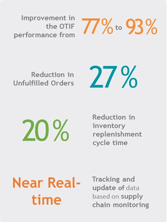 In a span of just twelve weeks, the solutions helped track the product’s journey right from manufacturing, receiving, picking, staging, loading, delivery, till invoicing on a real-time basis. With the help of our supply chain analytics solutions, the team re-strategize the sourcing locations by analyzing the Impact of supplier location and transit times on the design-to-market time of a product. Our supply chain solution also Improve demand forecasting efficiency post automation of the sales-order process, which was one the crucial recommendation from OTIF failure investigation.